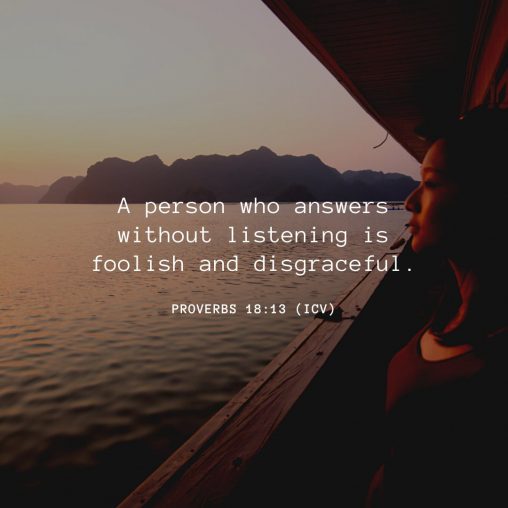 A person who answers without listening is foolish and disgraceful. Provebrs 18:13 (ICB) Before you say anything, listen. Truly listen. Not to respond, but to understand. Hold this…